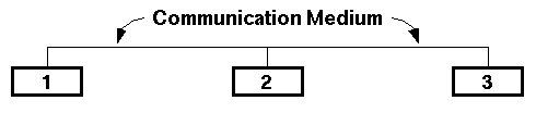 A network is a collection of two or more computing devices connected by a communication medium. Figure 1.1 shows a simple network with three computing devices. When a computing device wishes to send information to another device, it may do so by transmitting the information along a shared communication medium.